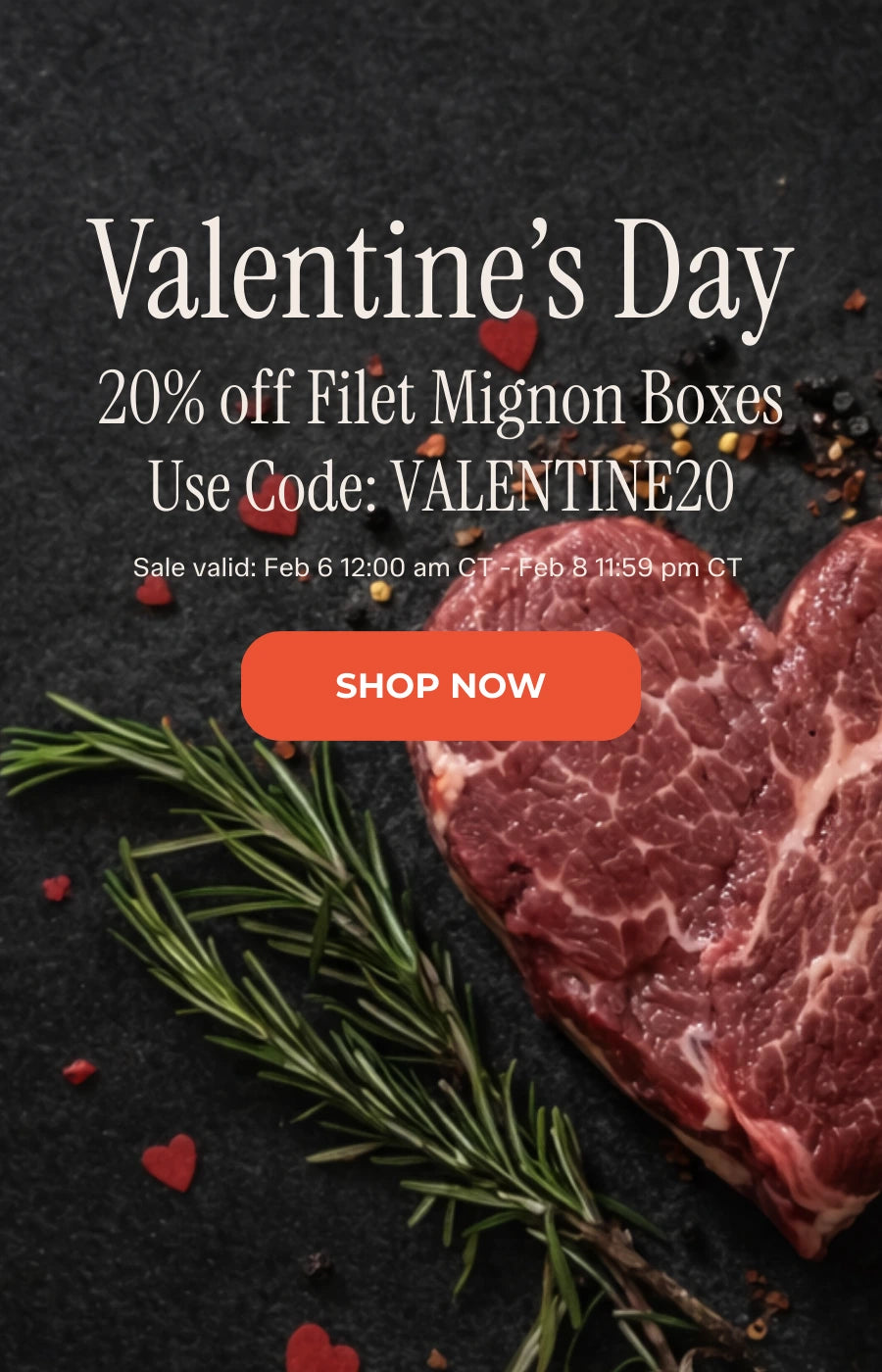 Our steaks are expertly wet-aged for 28 days to unlock deep, robust flavor and melt-in-your-mouth tenderness.