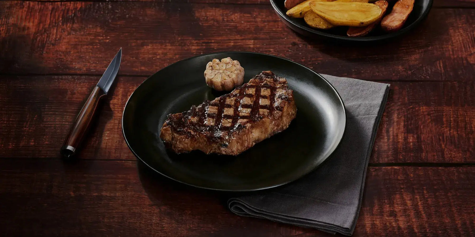 Our steaks are expertly wet-aged for 28 days to unlock deep, robust flavor and melt-in-your-mouth tenderness.